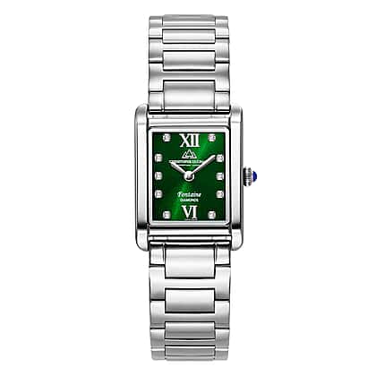 SWISS MADE Christophe Duchamp Fontaine Swiss Movt. Water Resistant Watch with 10 Diamonds (SI) and Sapphire Crystal Green Dial Silver Strap