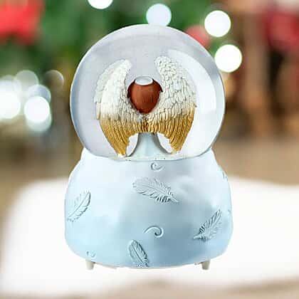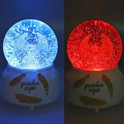 Gaurdian Angel Glass Music Ball with Auto Snowing (15x10cm) - White