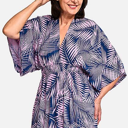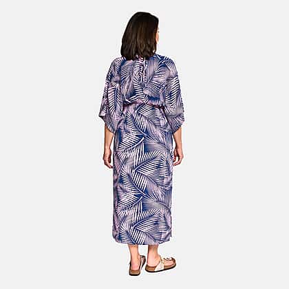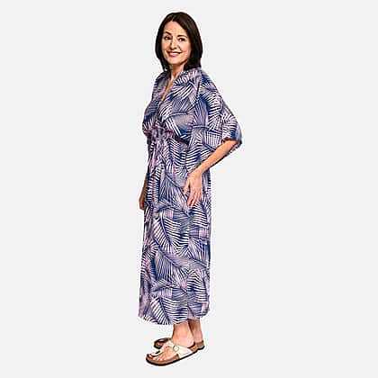 Bali Collection - Leaf Pattern Maxi Dress (One Size) - Navy Blue and Pink
