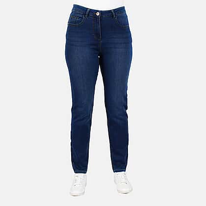 Get these very comfy relaxed skinny stretch jeans from the Angelina collection. These jeans are made from durable, soft and comfortable fabric, giving you a perfect fit as it is stretchable with a high-rise waist and super-slender fit. It has five pockets, three in front and two at the back. You can pair it with a vest-top, cardigan or jumper.