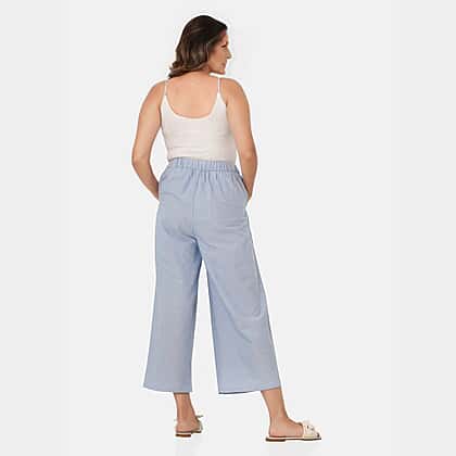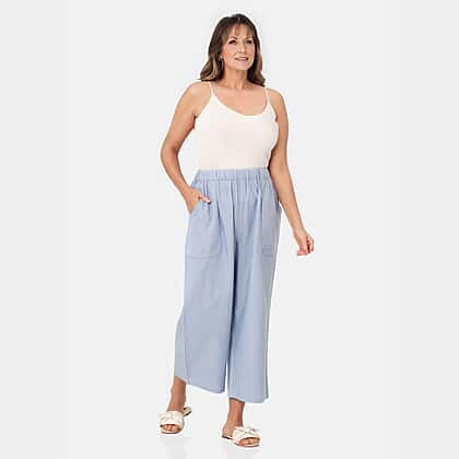 TAMSY 100% Cotton Wide Leg Pant (Size L) - Light Blue