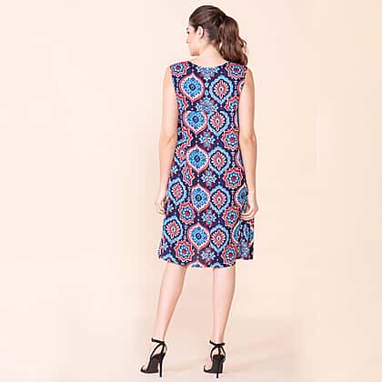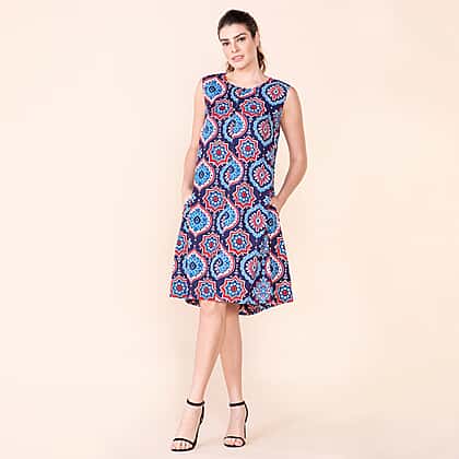 The sleeveless printed dress from Tamsy is the perfect piece to wear to go on a walk, enjoy a cup of coffee at a park or grab brunch with your friends. The eye-catching printed pattern gives an elevated appeal to this women's dress. Made from 100% viscose fabric to keep you comfortable and helps retain its colour even after multiple washes. Team it with wedges or high heels for a fashion-forward look.