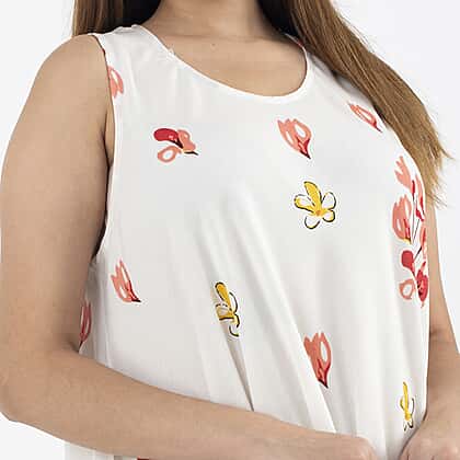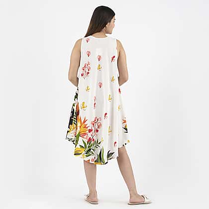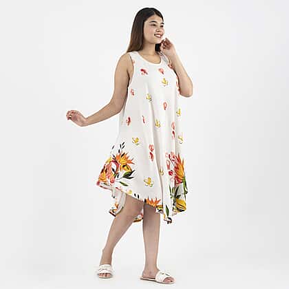 TAMSY 100% Viscose Floral Screen Printed Umbrella Dress (Size - One Size) - White