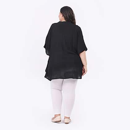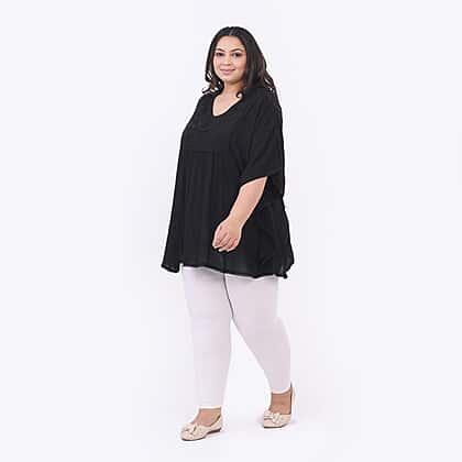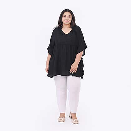 Be occasion ready with this vibrant embroidered kaftan top by Tamsy. It’s cut in crinkle viscose with a relaxed fit, notch v-neck and embroidered front panel. The picot trim and gathered front add touches of pretty detail.
