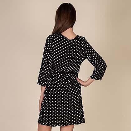 TAMSY 100% Viscose Polka Dot Pattern Dress (Size S, 8-10) - Black