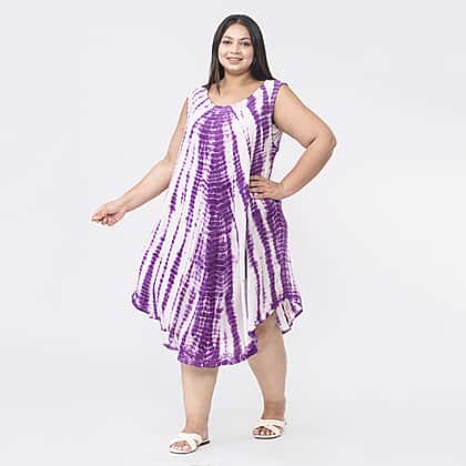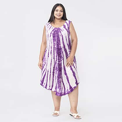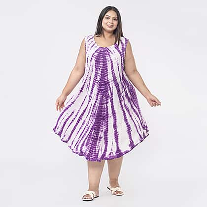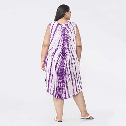 Get ready for summer fun with this elegant tie-dye umbrella dress. It is made from comfortable and lightweight fabric, with a sleeveless design, round neck and that tie-dye print.