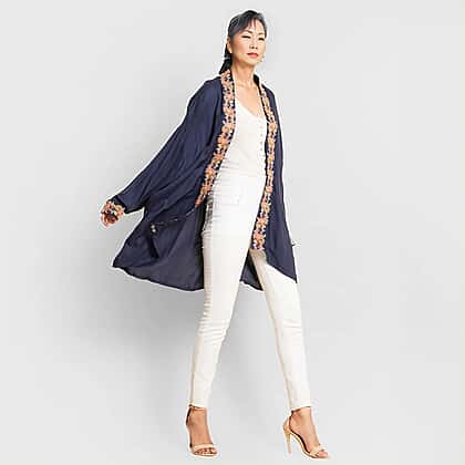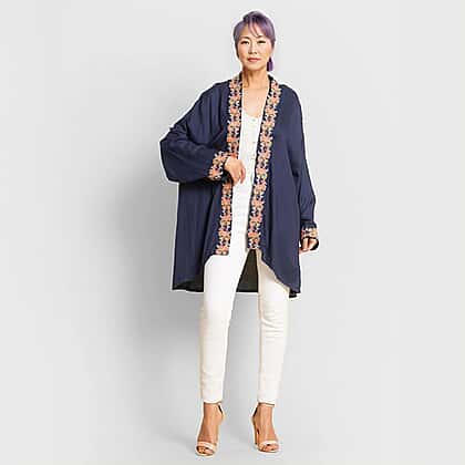 The Kimono from Tamsy Brand reveals the wearer's imaginative and free-spirited side. A stunning appearance is created by full sleeves and an open front neck. Loose clothing complements all body types well. Strong hand-stitching ensures durability. Perfect as a beach cover-up, cardigan, or shrug. It is versatile in terms of style, made entirely of viscose, and has a lovely drape and silky feel.