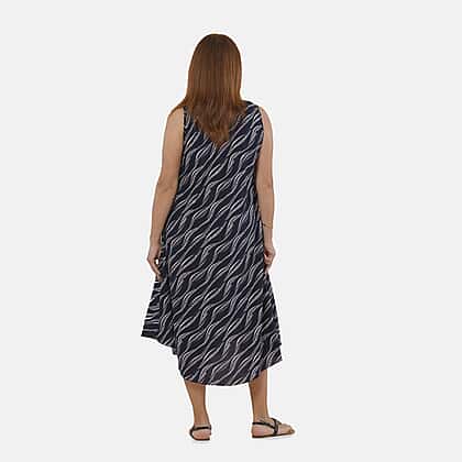 TAMSY 100% Viscose White Wave Pattern Dress (Size 105x60 Cm) - Navy