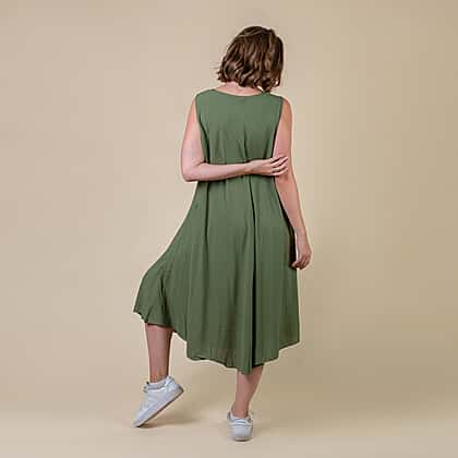 TAMSY Scoop Neck Sleeveless Women's Dress - Green