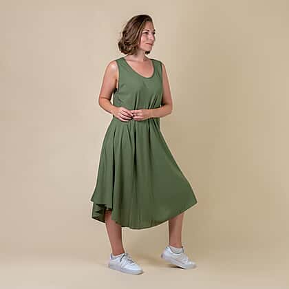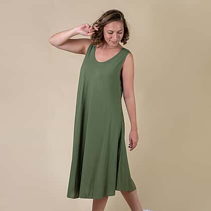 This minimalistic plain pattern women's midi dress adds a simplistic edge to your wardrobe. Made from soft, lightweight and breathable viscose fabric to keep you relaxed around the clock. Tailored with a relaxed-fit silhouette, scoop neckline and sleeveless design to maximise comfort. Style this midi dress with a pair of block heels for an on-trend appeal.