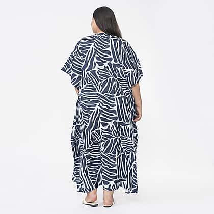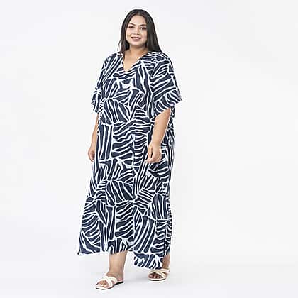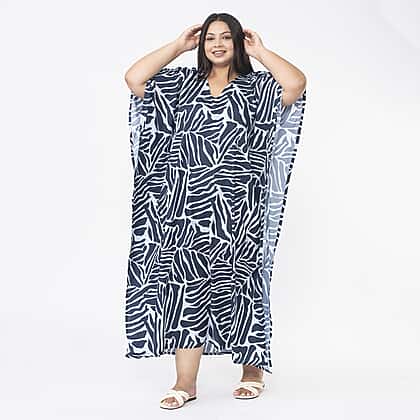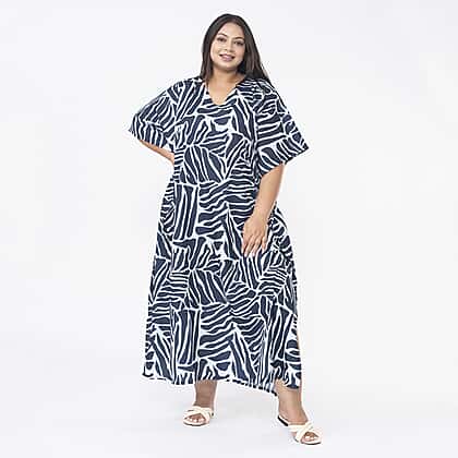 Step into this summer season with this stylish v-neck kaftan dress. This comfortable and airy kaftan dress has a soothing colour palette and flowy design for air to breathe in. Elevate your wardrobe with this modern and comfortable Kaftan dress.