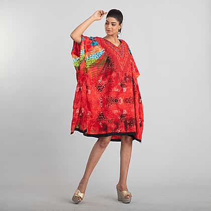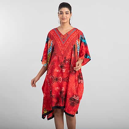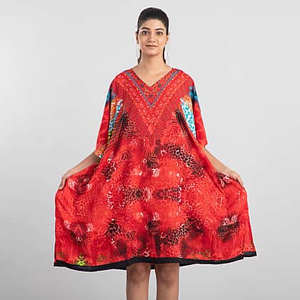 TAMSY Animal Fantasy Printed Women's Short Kaftan - Red