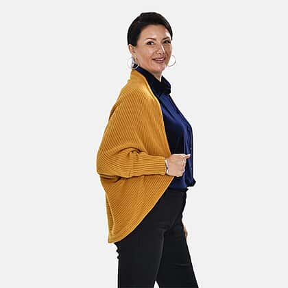 Tamsy Batwing Sleeves Open Front Cardigan (One Size 8-18) - Mustard