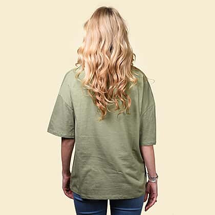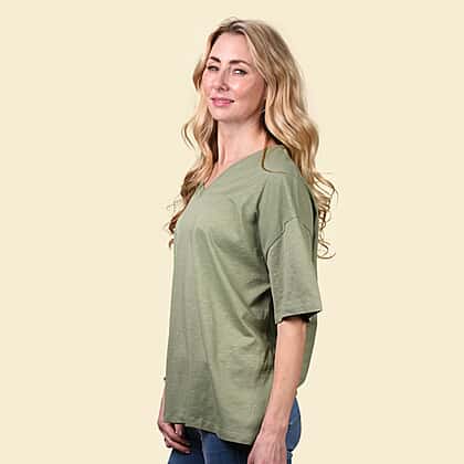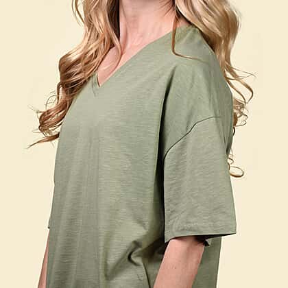 TAMSY 100% Cotton V-Neck Women's T-Shirt - Olive green
