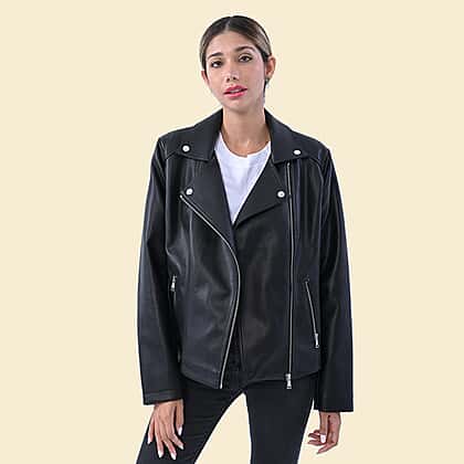 TAMSY Faux Leather Biker Style Jacket - Small - Bust 40in CB 21.5in