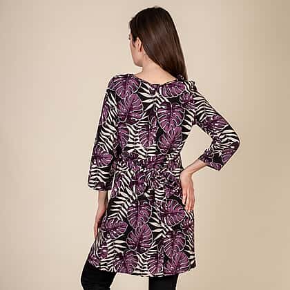 TAMSY Leaf Printed Plum Top (Size S,8-10) - Black - Purple