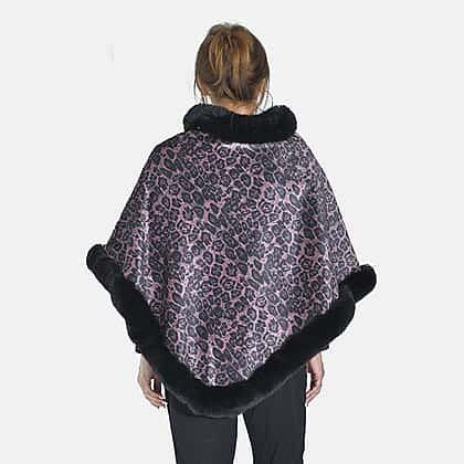 Tamsy Leopard Pattern Double Layer Faux Fur Poncho (Size 8-22) - Pink