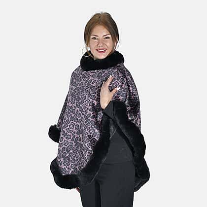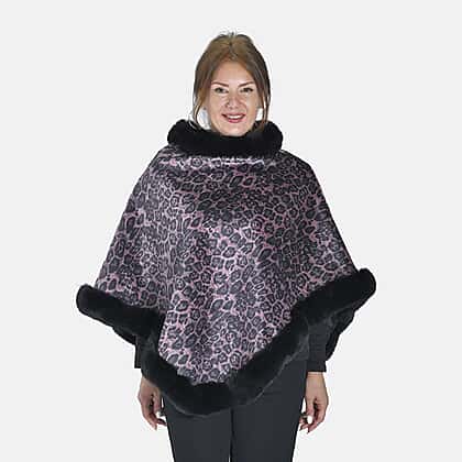 Tamsy Leopard Pattern Double Layer Faux Fur Trim Poncho (Size 8 -22) - Pink & Beige