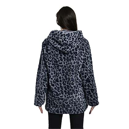 TAMSY Leopard Pattern Faux Fur Long Sleeved Hooded Coat (Size S, 8-10) - Grey