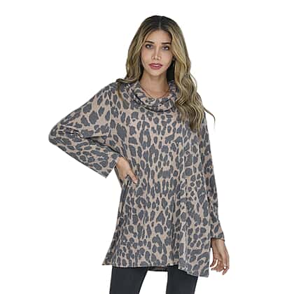 Elevate your everyday look with this leopard printed cowl neck top from Tamsy. This one size top is made from a soft and warm fabric, making it perfect for cool weather. The eye-catching leopard print on this top creates a striking appearance. Designed with a stylish cowl neck to provide an on-trend edge to this top. The one-size design of this top makes it a suitable option for women of all ages.