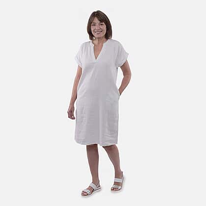Stack your summer wardrobe collection with this beautiful linen shirt dress by Tamsy. It is made from linen and viscose blended fabric for all-day comfort and features a V-neck half placket to a style. You can pair this short dress with sneakers or sandals for a super comfy and stylish on-go summer look.