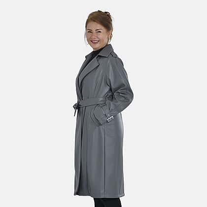 Tamsy Oversized Belted Coat with Adjustable Cuffs (Size S,8-10) - Dark Grey