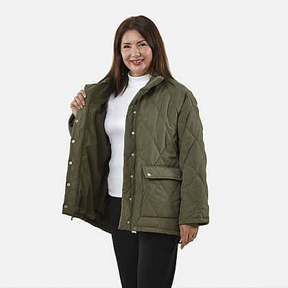TAMSY Padded Women's Coat with Two Pockets (Size M,12-14) - Green