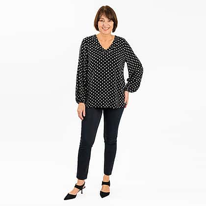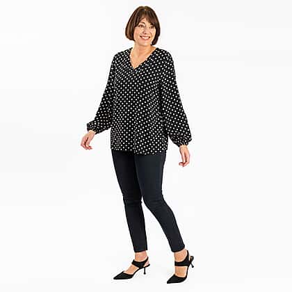 TAMSY Polka Dots 100% Viscose Top (Size L,16-18) - Black