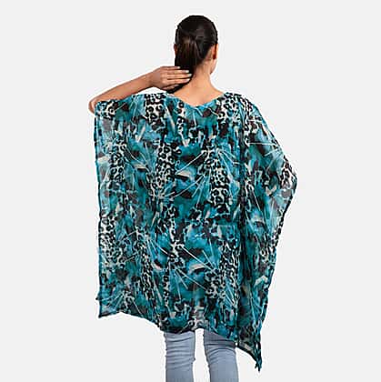 The beautiful kaftan has flowery motifs from the Tamsy collection. Because of its flowery design, this kaftan will be ideal for wearing this Summer. The kaftan is soft and translucent by nature. The kaftan is meticulously created from delicate Chiffon material that is gentle on the skin. The kaftan has a round neckline and is knee-length. The fabric ensures comfort while also adding style, as you can layer it with your swimsuit or add a belt to transform it into a gorgeous summer dress. The costume has three-quarter sleeves and is available in one size that fits sizes 8 to 18.