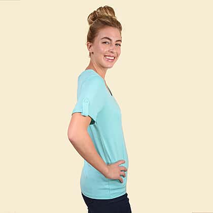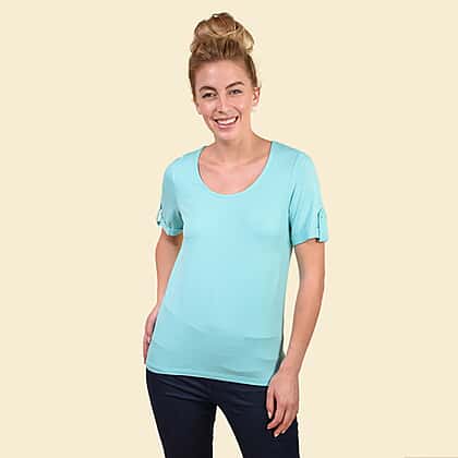 TAMSY Round Neckline Short Sleeve Women's Top - Turquoise