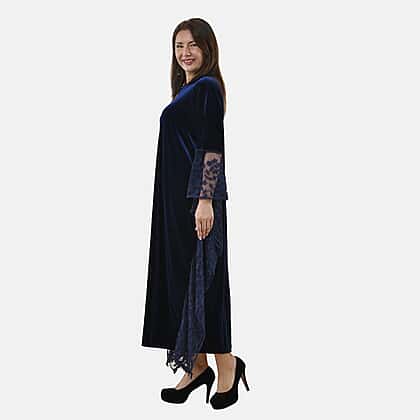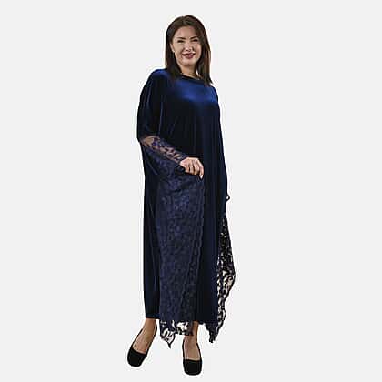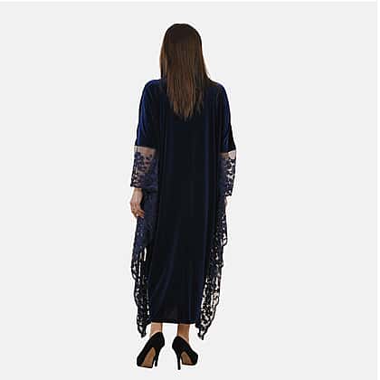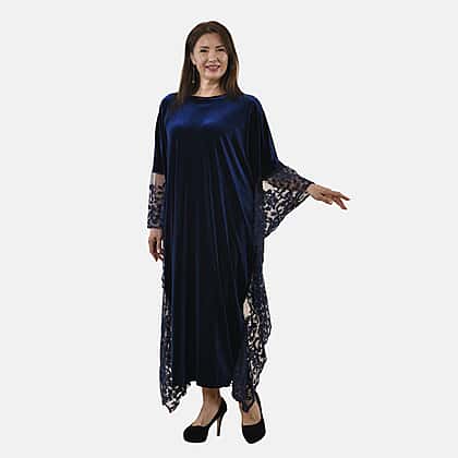 Tamsy Velvet Lace Trim Kaftan Maxi Dress - Navy