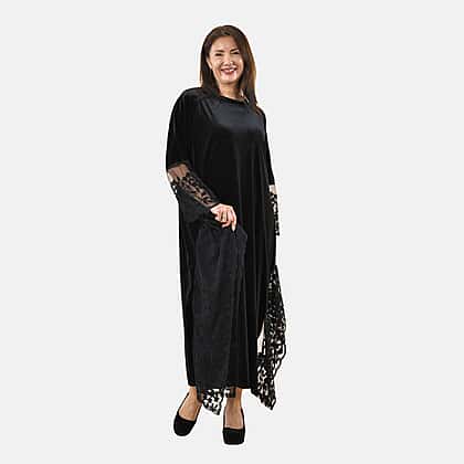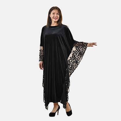 Tamsy Velvet Maxi Kaftan Dress (Size 129 Cm) - Black