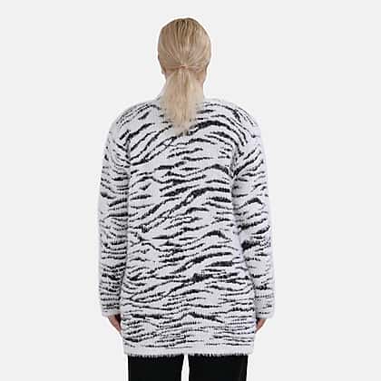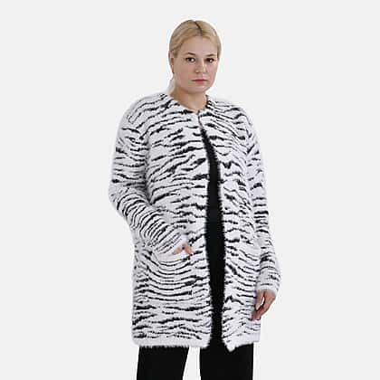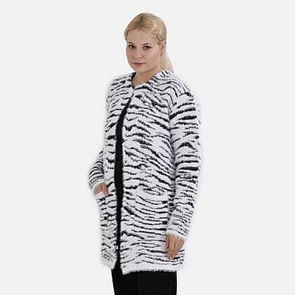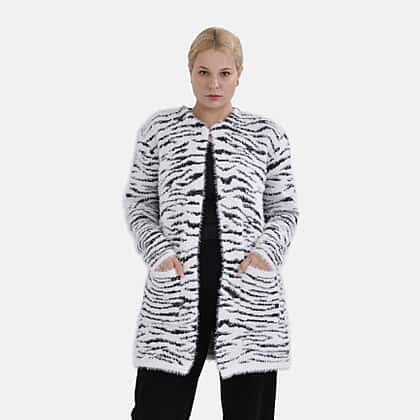 Tamsy Zebra Print Coatigan with Pockets (Size - One Size) - White