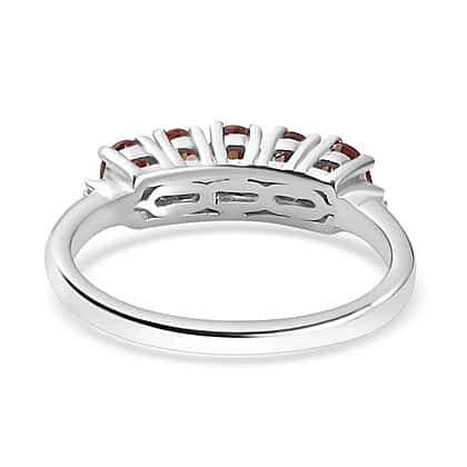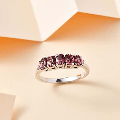 Tanzanian Blush Garnet and Diamond 5 Stone Ring in Rhodium Overlay Sterling Silver