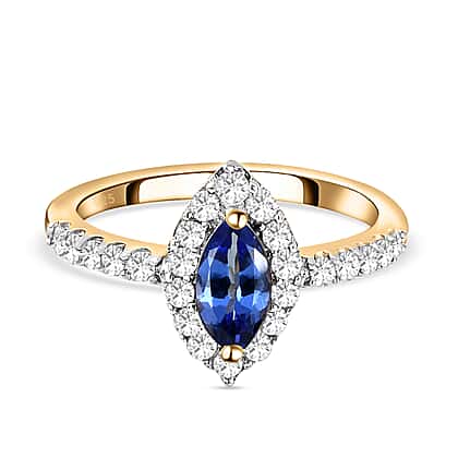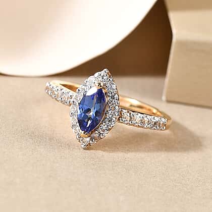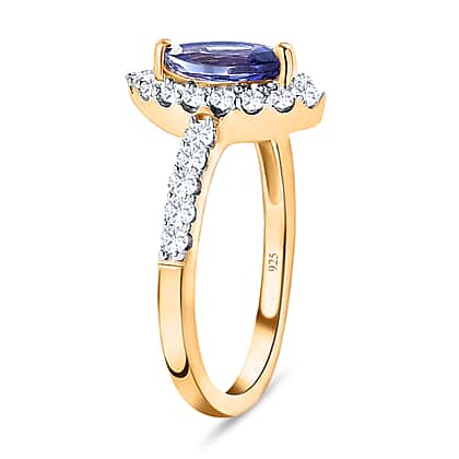 Tanzanite and Natural Cambodian Zircon Ring in 18K Vermeil Yellow Gold Plated Sterling Silver 1.14 Ct.