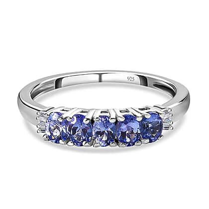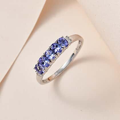 Tanzanite & Diamond 5 Stone Ring in Platinum Overlay Sterling Silver 1.00 Ct