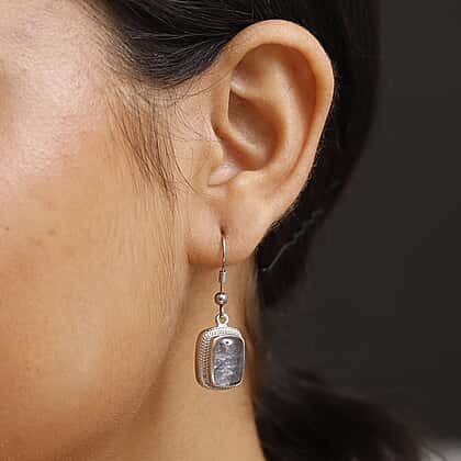 Tanzanite Matrix Solitaire Lever Back Earring with J Hook in White Tone 10.00 Ct.