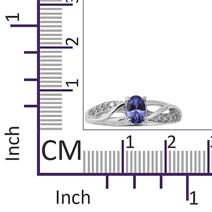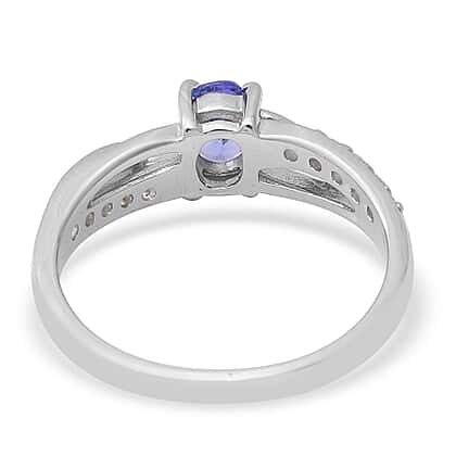 0.78 Ct Tanzanite and Zircon Solitaire Ring in Rhodium Plated Sterling Silver