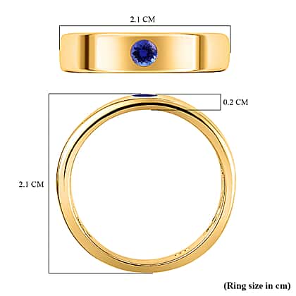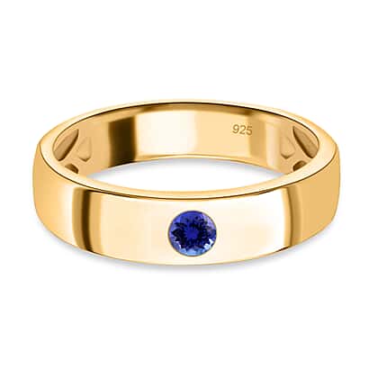A vibrant tanzanite adorns this ring crafted in silver and bathed in a gold overlay. The classy tanzanite ring (0.150 Carat) is sure to bring you a great first impression wherever you go. The stunning blue sailing in the luxurious gold finish band will bring out the brilliance in your style. The 14K gold overlay has been polished to a fine finish to add a bright sheen to the ring.