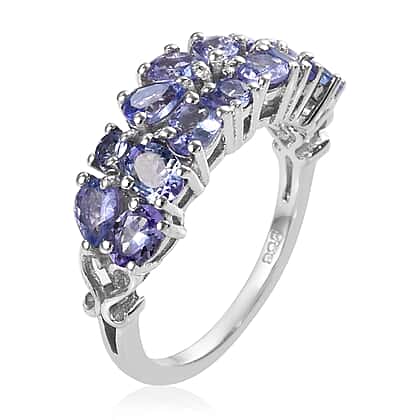 2 Carat Tanzanite Cluster Ring in Platinum Plated Sterling Silver