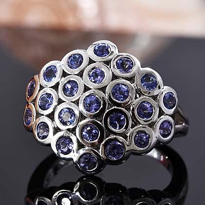 - This dome ring is adorned with round Tanzanite studded closely on top