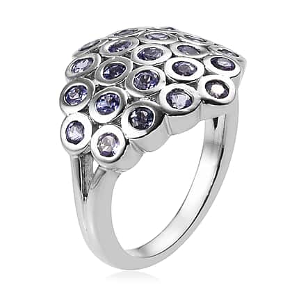 Tanzanite (Rnd) Circle Cluster Dome Ring in Platinum Overlay Sterling Silver 1.50 Ct.