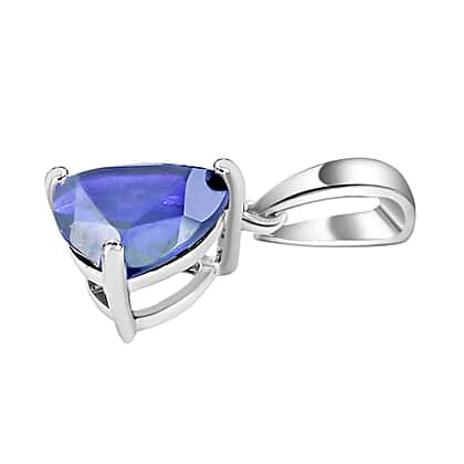 Tanzanite Solitaire Pendant in Platinum Overlay Sterling Silver gracefully bridges the unmatched elegance of a minimalist design and the bold etiquette of a lone gemstone. The pendant showcases the rare beauty of a Tanzanite trillion that cuts a modern figure with its angular silhouette. The prong mounted gemstone coveted for its blue hues looks fabulous against the platinum shank.