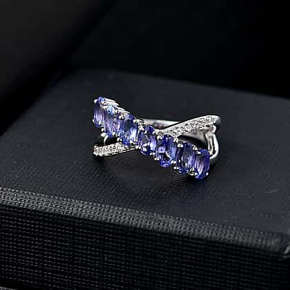 Tanzanite & White Zircon Ring in Rhodium Overlay Sterling Silver 1.83 Ct.