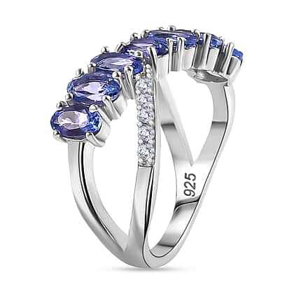 Tanzanite and White Zircon 7-Stone Ring in Rhodium Overlay Sterling Silver 1.83 Cts.