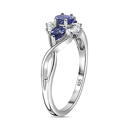 Tanzanite & White Zircon Three Stone Ring in Platinum Overlay Sterling Silver