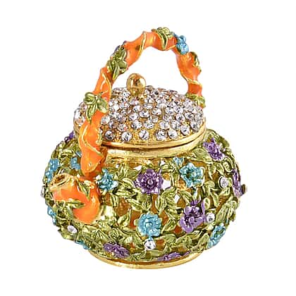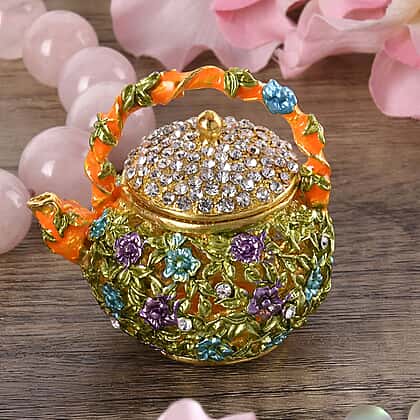 Teapot Crystal Studded Trinket Jewellery Box - Multi