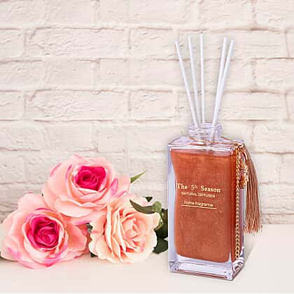 The 5th Season - 150ml Reed Diffuser Air Freshener in Gift Box with Artificial Flower - Gold (English Pear and Freesia Fragrance)