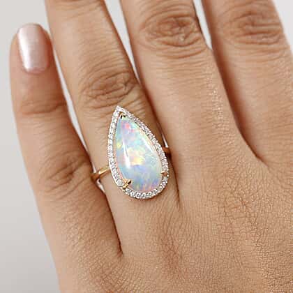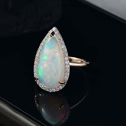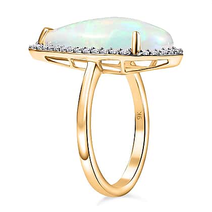 LUXURIANT 9K Yellow Gold AAA Natural Ethiopian Opal and Lab Grown Diamond (SI-G/H) Ring 5.33 Ct.