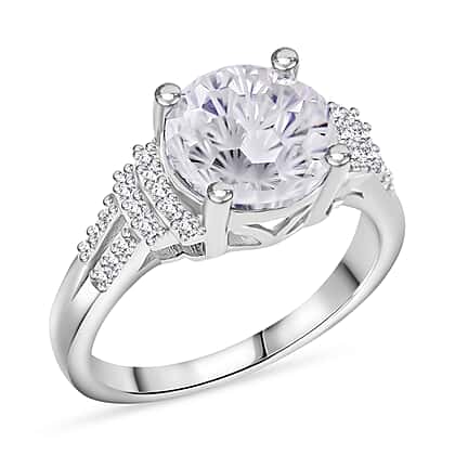 The Great Glacier Cut Moissanite Ring in Rhodium Overlay Sterling Silver 2.76 Ct.
